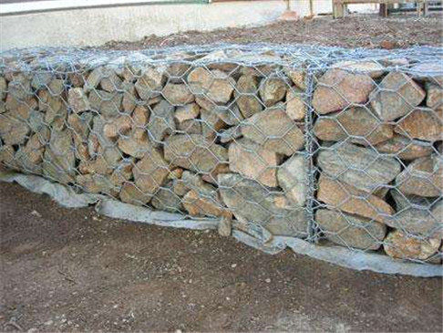 格賓網(格賓石籠)是由機編雙絞合六邊形金屬網面構成的箱形結構,格賓網的鋼絲是由厚鍍鋅低碳鋼絲制造而成的。為了提高格賓網結構的強度,所有的鋼絲網面板邊端都采用直徑更大的鋼絲,對格賓網的鋼絲可進行厚鍍高爾凡處理來提高鋼絲的耐久性。當用于土壤或水呈酸性的污染環(huán)境中時,還可對鋼絲采用覆塑等措施進行保護。格賓網是由間隔1m的隔板分成若干單元格,格賓石籠即在格賓網里填充石頭,形成了具有柔性,透水性及整體性的結構。