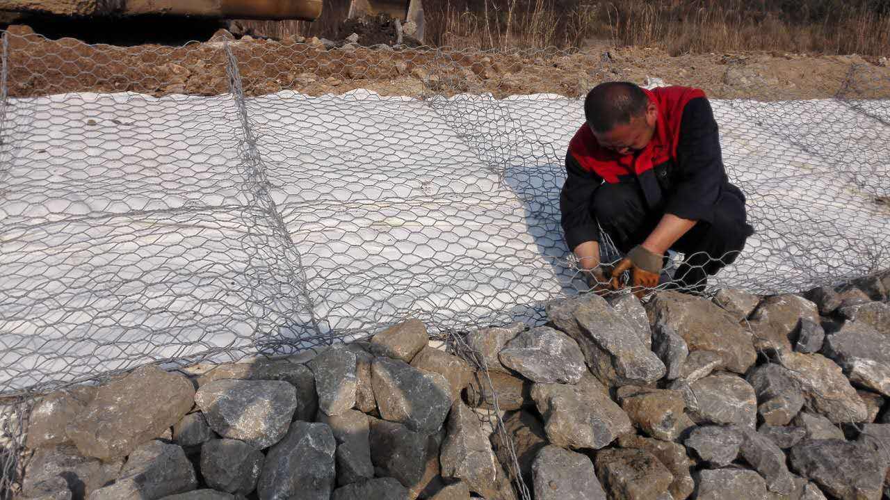 雷諾護(hù)墊是指由機(jī)編雙絞合六邊形金屬網(wǎng)面構(gòu)成的厚度遠(yuǎn)小于長度和寬度的墊形工程構(gòu)件,其中裝入塊石等填充料后連接成一體,成為主要用于水利堤防、岸坡、海曼等的防 沖刷結(jié)構(gòu),具有柔性、對地基適應(yīng)性的優(yōu)點(diǎn)。