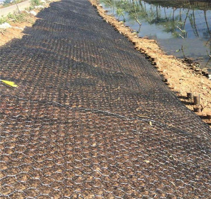 加筋麥克墊:組合式產(chǎn)品,土工材料與綠格網(wǎng)相結(jié)合而成,兼具土工材料及綠格網(wǎng)的優(yōu)點(diǎn)。土工材料為聚丙烯材質(zhì),綠格網(wǎng)鋼絲通常選用防腐性能好的鍍10%鋁鋅合金鋼絲。