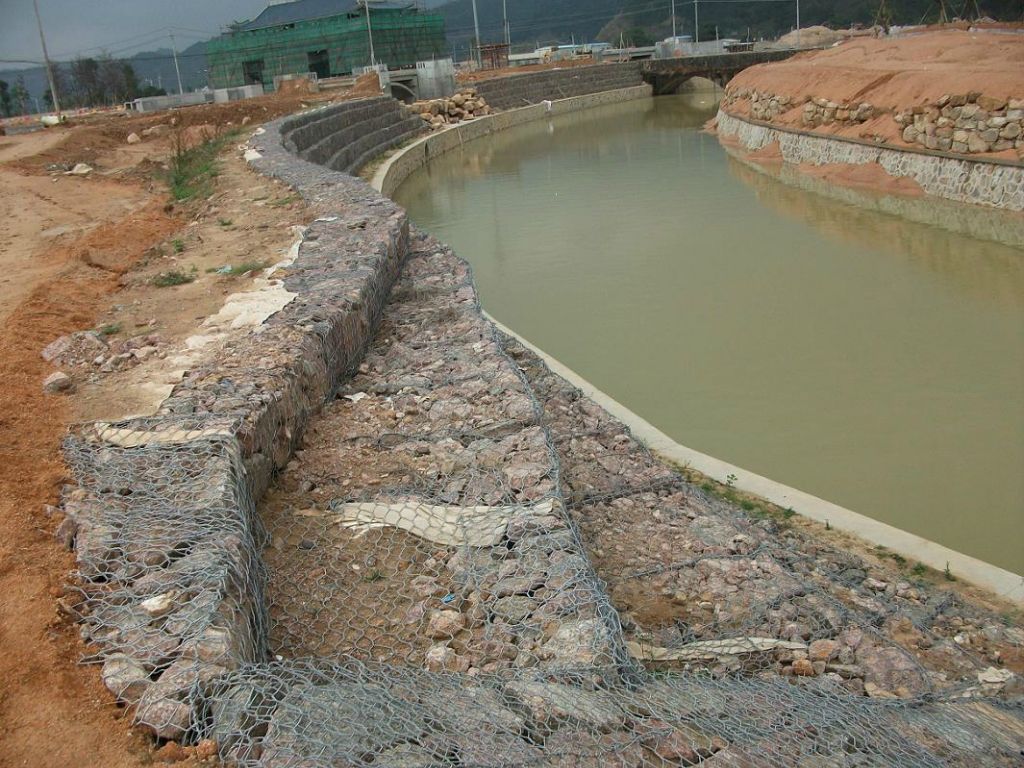 雷諾護(hù)墊也叫格賓護(hù)墊、石籠護(hù)墊由六角網(wǎng)的網(wǎng)片隔板將護(hù)墊分隔成幾個單元格,這樣可以增加護(hù)墊的強(qiáng)度,既可防止河岸遭水流、風(fēng)浪侵襲而破壞又實現(xiàn)了水體與坡下土體間的自然對流功能,達(dá)到生態(tài)平衡。雷諾護(hù)墊拋撒土壤,可以種植綠色植被,坡上植綠可增添景觀綠化效果。