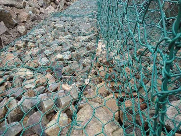 通常包塑石籠網在鋅-5%鋁-混合稀土鋼絲的表面包一層pvc保護層,再編織成各種規(guī)格的六角網。這層pvc保護層將會大大增加網的使用壽命,并且通過不同顏色的選擇,使其能和周圍的自然環(huán)境相融合。