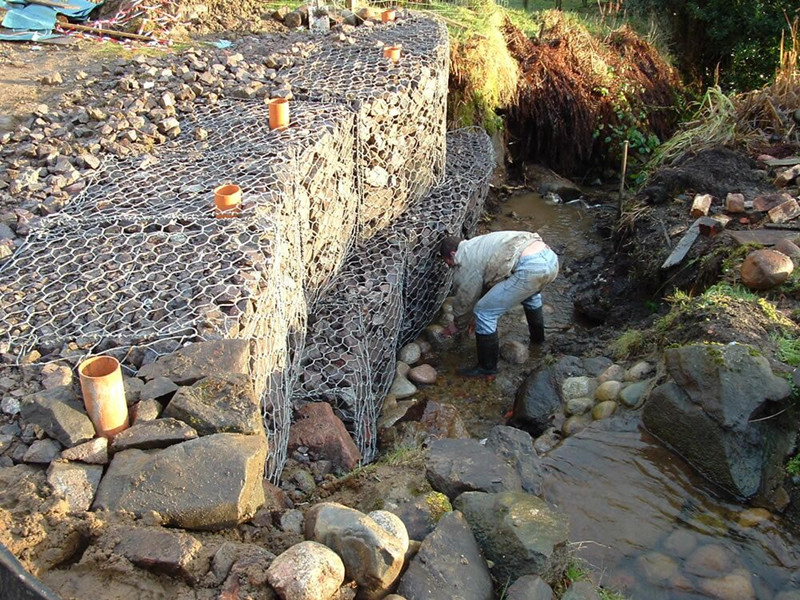 石籠網(wǎng)是使填石固定就位的鐵絲或聚合物絲網(wǎng)格式制作物。鐵絲籠是由鐵絲編織的網(wǎng)格或焊接而成的結(jié)構(gòu)物。這兩種結(jié)構(gòu)可以是電鍍的,編織的鐵絲箱可另外涂上PVC。用抗風(fēng)化堅(jiān)硬石塊作填料,它在石箱或石籠沉排中不會因磨蝕而很快破碎。裝有不同類型的塊石的石籠有不同的特性。多角的塊石能相互很好地聯(lián)鎖在一起,用其填裝的石籠不易變形。在園林景觀工程中,公路護(hù)坡、堤壩護(hù)岸以及山體陡坡復(fù)綠一直是工程技術(shù)人員頭疼的難題。多年來,他們一直在探索一種工藝,既能滿足山體、岸灘穩(wěn)定的防護(hù)要求,又能達(dá)到綠化環(huán)境的效果,同時還經(jīng)濟(jì)便捷。漸漸的,這種工藝開始浮出水面,它就是生態(tài)石籠網(wǎng)應(yīng)用工藝。生態(tài)石籠網(wǎng)應(yīng)用工藝是用高強(qiáng)度鍍鋅鋼絲編織成不同規(guī)格的矩形籠子,籠子內(nèi)充填石頭的結(jié)構(gòu)。這種結(jié)構(gòu)應(yīng)用到岸坡防護(hù)后,在人為和自然因素的雙重作用下,石塊之間的縫隙不斷被泥土充填。植物種子逐漸在石塊之間的泥土中生根發(fā)芽,茁壯生長,根系牢牢固定石塊和泥土。如此即可以對邊坡實(shí)現(xiàn)防護(hù)和綠化的目的,改善生態(tài)、保持水土的效果也十分顯著。生態(tài)石籠網(wǎng)箱工藝具有四個方面的優(yōu)勢:一是施工簡便,生態(tài)石籠網(wǎng)箱工藝只需將石頭裝入籠子中封口即可,不需要特殊技術(shù),也不需要水電。二是費(fèi)用低廉,生態(tài)石籠網(wǎng)箱每平方米造價只需15元。 三是景觀和防護(hù)效果好。生態(tài)石籠網(wǎng)箱工藝采用的工程措施和植物措施相結(jié)合的方式,能有效防止水土流失,景觀見效快,景觀效果更自然、更豐富。 四是使用壽命長,生態(tài)石籠網(wǎng)箱工藝壽命長達(dá)幾十年,且一般不用維修。