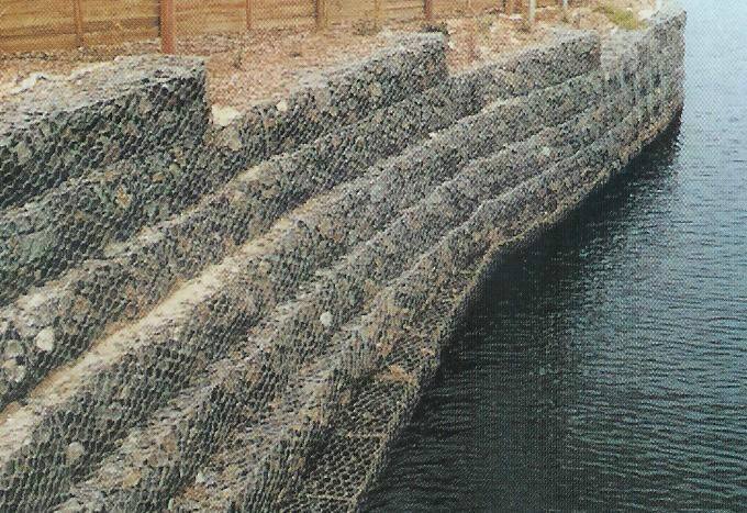 格賓石籠網(wǎng)是由高抗腐蝕、高強度、具有延展性的低碳鋼絲或者包覆PVC的以上鋼絲使用機械編織而成,根據(jù)ASTM A 975和EN10223標準,所使用的低碳鋼絲直徑根據(jù)工程設計要求而不同。一般介于2.0-4.0mm之間,鋼絲的抗拉強度不少于38kg/m2,金屬鍍層重量一般高于245g/m2石籠網(wǎng)片的邊緣線直徑一般要大于網(wǎng)線直徑。其雙線絞合部分的長度不得小于50mm.以保證絞合部分鋼絲的金屬鍍層和PVC鍍層不受破壞。