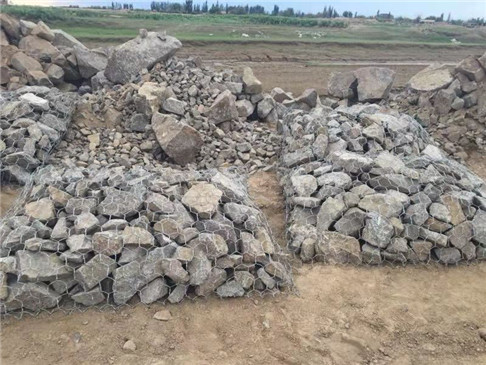 5、放置: 綁好后,用機(jī)器小心將塞克格賓一個(gè)一個(gè)或兩個(gè)兩個(gè)的吊放到恰當(dāng)位置。為了保證質(zhì)量,石籠網(wǎng)縫邊、組裝時(shí)應(yīng)用較粗的邊絲和綁絲。