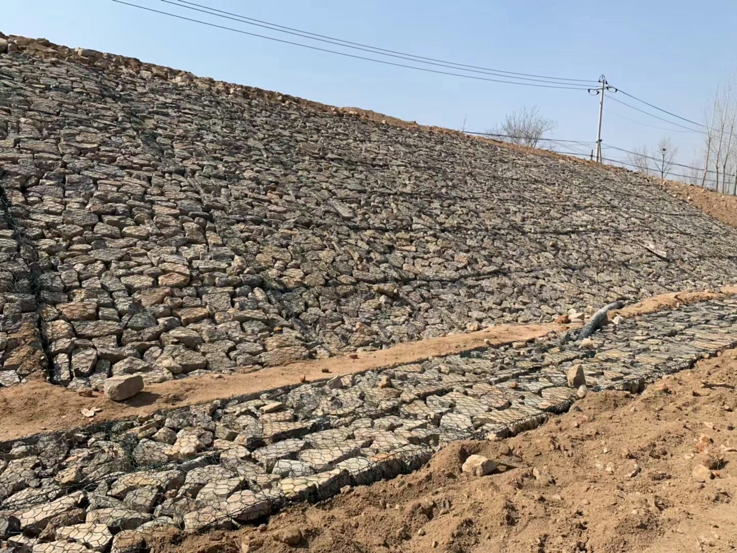 雷諾護(hù)墊是指由機(jī)編雙絞合六邊形金屬網(wǎng)面構(gòu)成的厚度遠(yuǎn)小于長度和寬度的墊形工程構(gòu)件,其中裝入塊石等填充料后連接成一體,成為主要用于水利堤防、岸坡、海曼等的防 沖刷結(jié)構(gòu),具有柔性、對(duì)地基適應(yīng)性的優(yōu)點(diǎn)。
