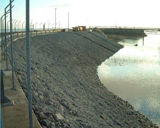 綠濱墊是指金屬網(wǎng)面構(gòu)成的厚度遠(yuǎn)小于長(zhǎng)度和寬度的墊形工程構(gòu)件,其中裝入塊石等填充料后連接成一體,成為主要用于水利堤防、岸坡、海曼等的防沖刷結(jié)構(gòu),具有柔性、對(duì)地基適應(yīng)性的優(yōu)點(diǎn)。綠濱墊是厚度在0.17-0.3m(含0.3m)的網(wǎng)墊結(jié)構(gòu)。主要用作河道、岸坡、路基邊坡護(hù)坡結(jié)構(gòu)。既可防止河岸遭水流、風(fēng)浪侵襲而破壞,又實(shí)現(xiàn)了水體與坡下土體間的自然對(duì)流交換功能,達(dá)到生態(tài)平衡。坡上植綠可增添景觀、綠化效果。