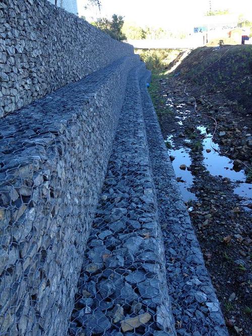 (2)將組裝好的籠體安裝在所需的位置上,并與相鄰的籠體綁扎連接,將準(zhǔn)備好的石塊或卵石填入籠中,要作適當(dāng)?shù)拇a排,以達(dá)到較高的密度,石塊直徑一般需大于網(wǎng)目的兩倍,石塊要選用抗風(fēng)化能力強(qiáng)的石料。用拉筋來保持籠體形狀的規(guī)整,拉筋間距一般在300mm左右。石塊填充完畢后,蓋上籠蓋,整齊籠子邊緣,并綁扎連接,如采用分體式籠蓋,則需等全部籠子填充完后再鋪設(shè)籠蓋,并沿籠體和隔片邊緣依次綁扎,可根據(jù)實(shí)際情況對(duì)籠體進(jìn)行覆土綠化。