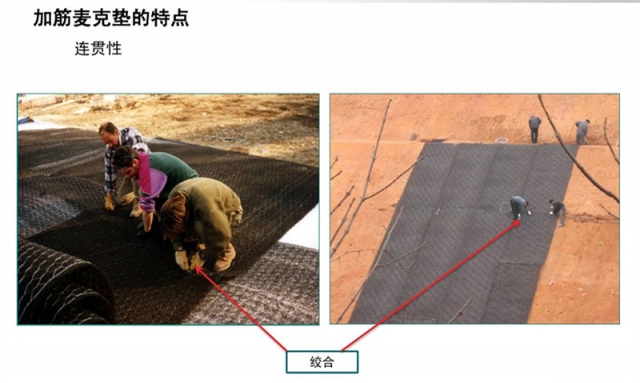 施工方便:加筋麥克墊可按設計意圖,工廠化生產(chǎn)制作出半成品,施工現(xiàn)場則按設計圖進行組裝定型,操作簡便、受氣候干擾小,且適宜于機械化操作,既可保證施工質(zhì)量又可加快工程進度。