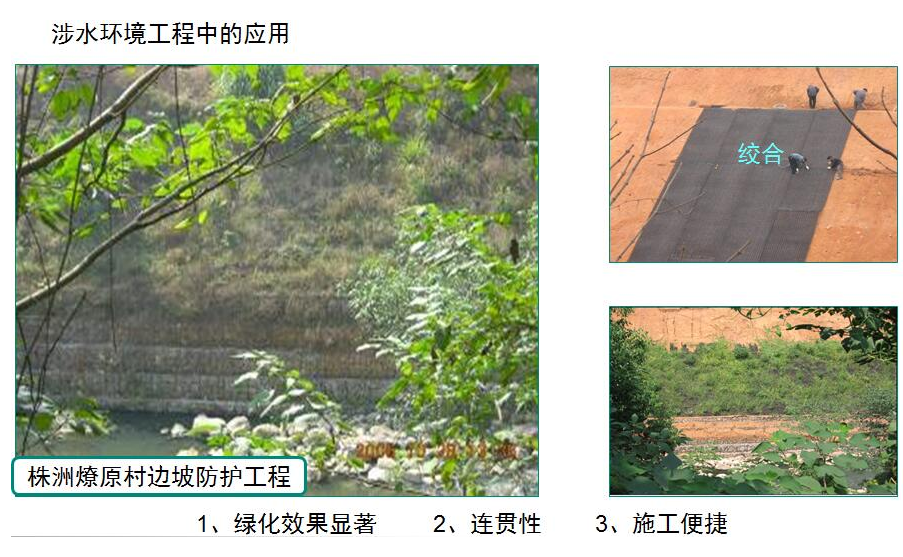 在河道護(hù)坡、邊坡防護(hù)工程中,使用加筋麥克墊,可以讓實際人員測量渠道地基和堤岸的粗糙值,以便增強其穩(wěn)定能力,促進(jìn)植物生長,較少渠水滲透。最重要的是能夠防止河道(渠道)中的土壤沖刷。加筋麥克墊一般直接放在挖好的地基上,即使預(yù)先沒有準(zhǔn)備,也能夠保證加筋麥克墊的穩(wěn)定。