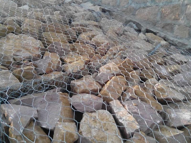 雷諾護(hù)墊是指由機(jī)編雙絞合六邊形金屬網(wǎng)面構(gòu)成的厚度遠(yuǎn)小于長(zhǎng)度和寬度的墊形工程構(gòu)件,其中裝入塊石等填充料后連接成一體,成為主要用于水利堤防、岸坡、海曼等的防 沖刷結(jié)構(gòu),具有柔性、對(duì)地基適應(yīng)性的優(yōu)點(diǎn)。