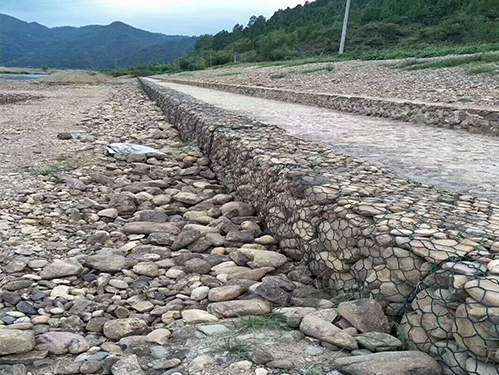 安裝要求:將折疊好的格賓護墊置于平實的地面展開,壓平多余的折痕,將前后面板、底板、隔板立起到一定位置,呈箱體形狀。相鄰網箱的上下四角以雙股組合絲連接,上下框線或折線綁扎并使用螺旋固定絲絞合收緊連結。邊緣突出部分需折疊壓平。將每個網箱六個面及隔斷組裝完整,確保各個網面平整,然后放在正確的位置上。
