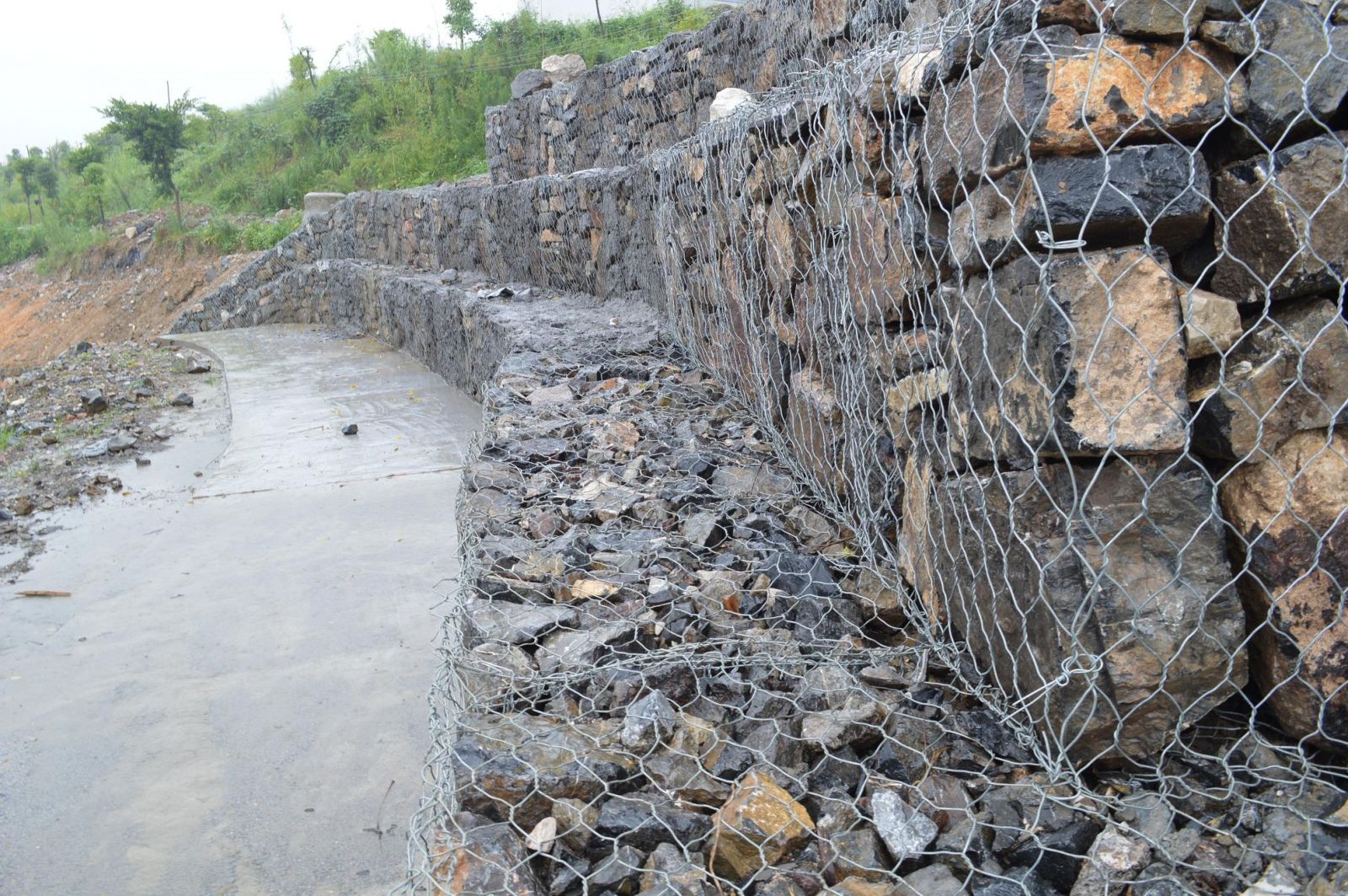 石籠網(wǎng)由高抗腐蝕、高強度、具有延展性的低碳鋼絲或者包覆PVC的以上鋼絲使用機械編織而成,使用該網(wǎng)制作而成的箱型結(jié)構(gòu)就是石籠。根據(jù)ASTM和EN標(biāo)準(zhǔn),所使用的低碳鋼絲直徑根據(jù)工程設(shè)計要求而不同。一般介于2.0-4.0mm之間,石籠網(wǎng)鋼絲的抗拉強度不少于38kg/m2,金屬鍍層重量一般高于245g/m2,石籠網(wǎng)片的邊緣線直徑一般要大于網(wǎng)線直徑。其雙線絞合部分的長度不得小于50mm.以保證絞合部分鋼絲的金屬鍍層和PVC鍍層不受破壞。