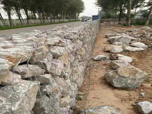 石籠網(wǎng)由高抗腐蝕、高強度、具有延展性的低碳鋼絲或者包覆PVC的以上鋼絲使用機械編織而成,使用該網(wǎng)制作而成的箱型結(jié)構(gòu)就是石籠。根據(jù)ASTM和EN標(biāo)準(zhǔn),所使用的低碳鋼絲直徑根據(jù)工程設(shè)計要求而不同。一般介于2.0-4.0mm之間,石籠網(wǎng)鋼絲的抗拉強度不少于38kg/m2,金屬鍍層重量一般高于245g/m2,石籠網(wǎng)片的邊緣線直徑一般要大于網(wǎng)線直徑。其雙線絞合部分的長度不得小于50mm.以保證絞合部分鋼絲的金屬鍍層和PVC鍍層不受破壞。