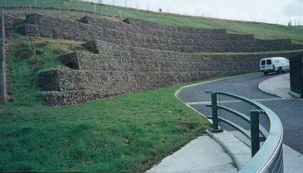 綠格網(wǎng)箱可用做于擋土墻和鋪設(shè)的護坡,網(wǎng)箱內(nèi)的填充料為松散體(硬質(zhì)石塊最佳,也可用一些建筑混凝土殘余料等)。存在較多的孔隙,利于砌體后填土和護坡下土層中孔隙水的排出,地表水一旦入滲土體中,則可用過砌體較快的排出,有效降低地表水位。綠格網(wǎng)結(jié)構(gòu)在滑坡治理以及泥石流的防治工程中,水及時排出降低了墻破壞的幾率,同時因綠格網(wǎng)擋墻存在縫隙,從根本解決了水浪后退時產(chǎn)生的真空吸力,加上綠格網(wǎng)擋墻表面良好的變形能力能夠有效的緩沖突發(fā)的外力沖擊。