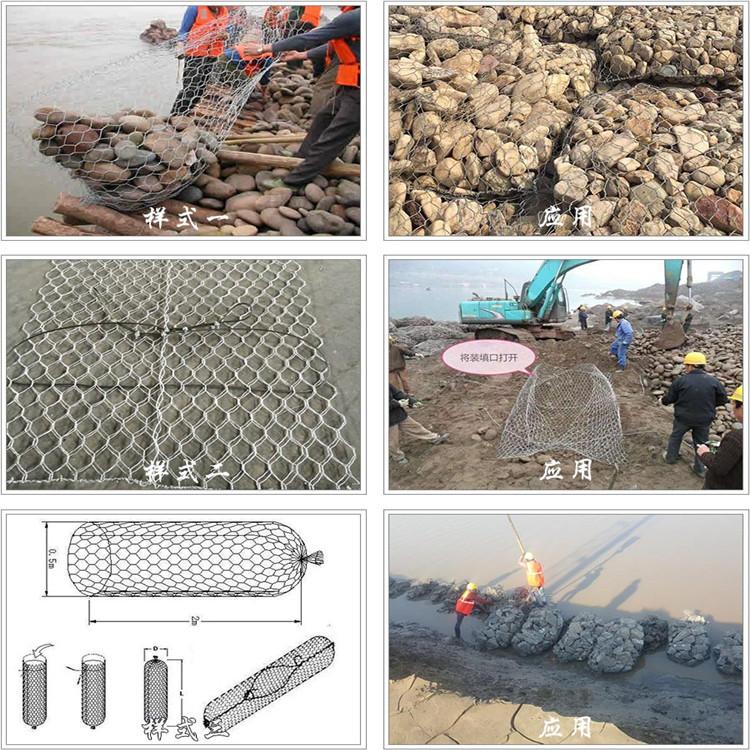 在工程施工過程中,網(wǎng)袋內(nèi)填充石塊 ,構(gòu)成結(jié)構(gòu)牢固 ,石塊與石塊之間有縫隙,這樣滲透性能強,石籠網(wǎng)袋用于河槽、河堤等防止沖刷,以及各種緊急施工工程當中。在編織網(wǎng)袋過程中,為了方便結(jié)口,重型六角網(wǎng)內(nèi)嵌入較粗鐵絲。 石籠網(wǎng)袋,生產(chǎn)過程中,所有環(huán)節(jié)都經(jīng)過了嚴格的標準測試。所有選六角網(wǎng)的編織鐵絲的鍍鋅量,捆綁絲必須符合 ASTM A975-97 標準,即拉力強度不得低于75000psi(515Mpa)—ASTM A641/A641M-03 。