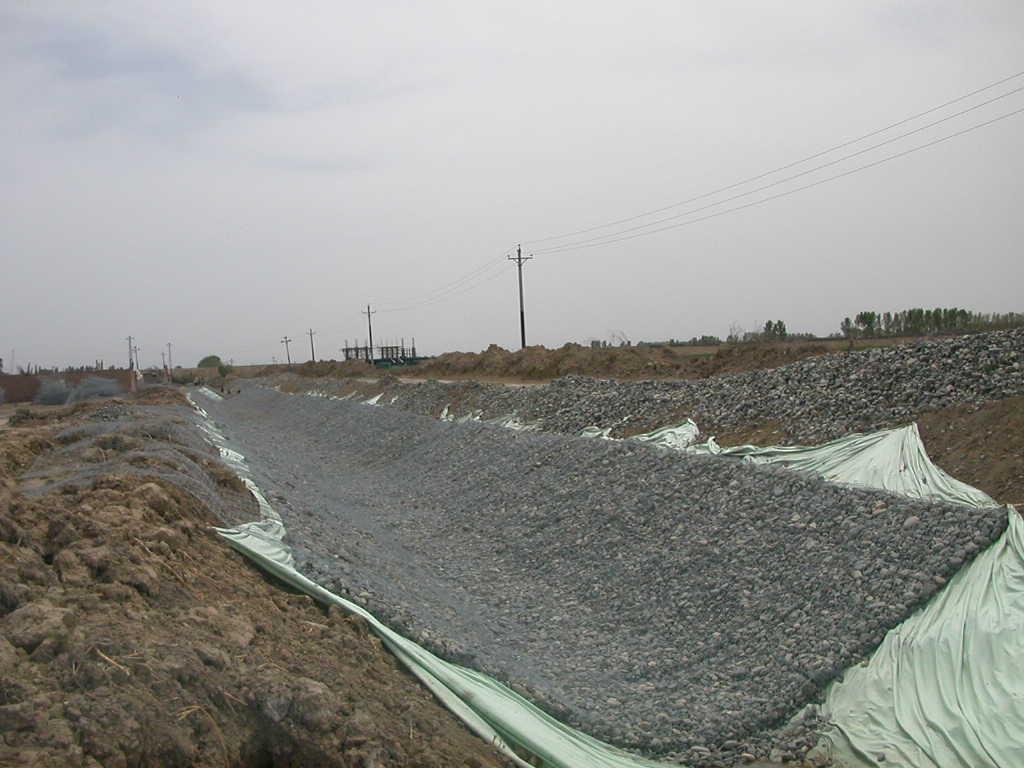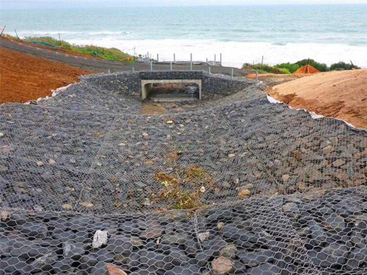 雷諾護(hù)墊是厚度在0.17-0.3m的網(wǎng)箱結(jié)構(gòu),在現(xiàn)場用于裝填石頭。主要用作河道、岸坡、路基邊坡防護(hù)結(jié)構(gòu)。既可防止河岸遭水流、風(fēng)浪侵襲而破壞,又實現(xiàn)了水體與坡下土體間的自然對流交換功能,達(dá)到生態(tài)平衡。坡上植綠可增添景觀、綠化效果。